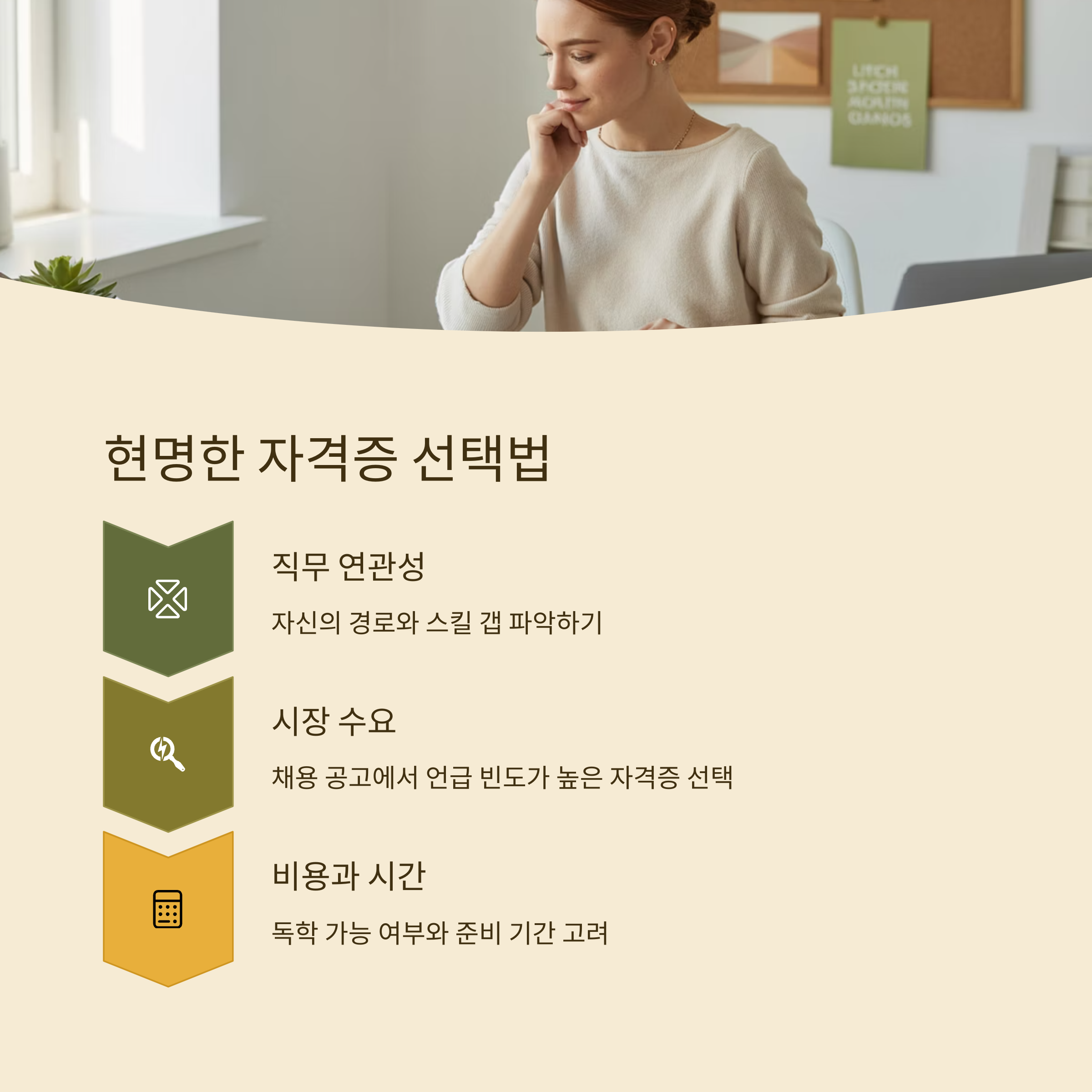 세 번째로 비용과 시간이에요. 독학이 가능한 시험인지, 학원 수강이 필요한지에 따라 예산이 달라져요. 준비 기간이 한 달을 넘지 않으면 ‘몰입형’으로 주말을 통째로 투자해도 훌륭해요. 반대로 두세 달짜리라면 퇴근 후 1시간씩 꾸준함이 관건이죠.