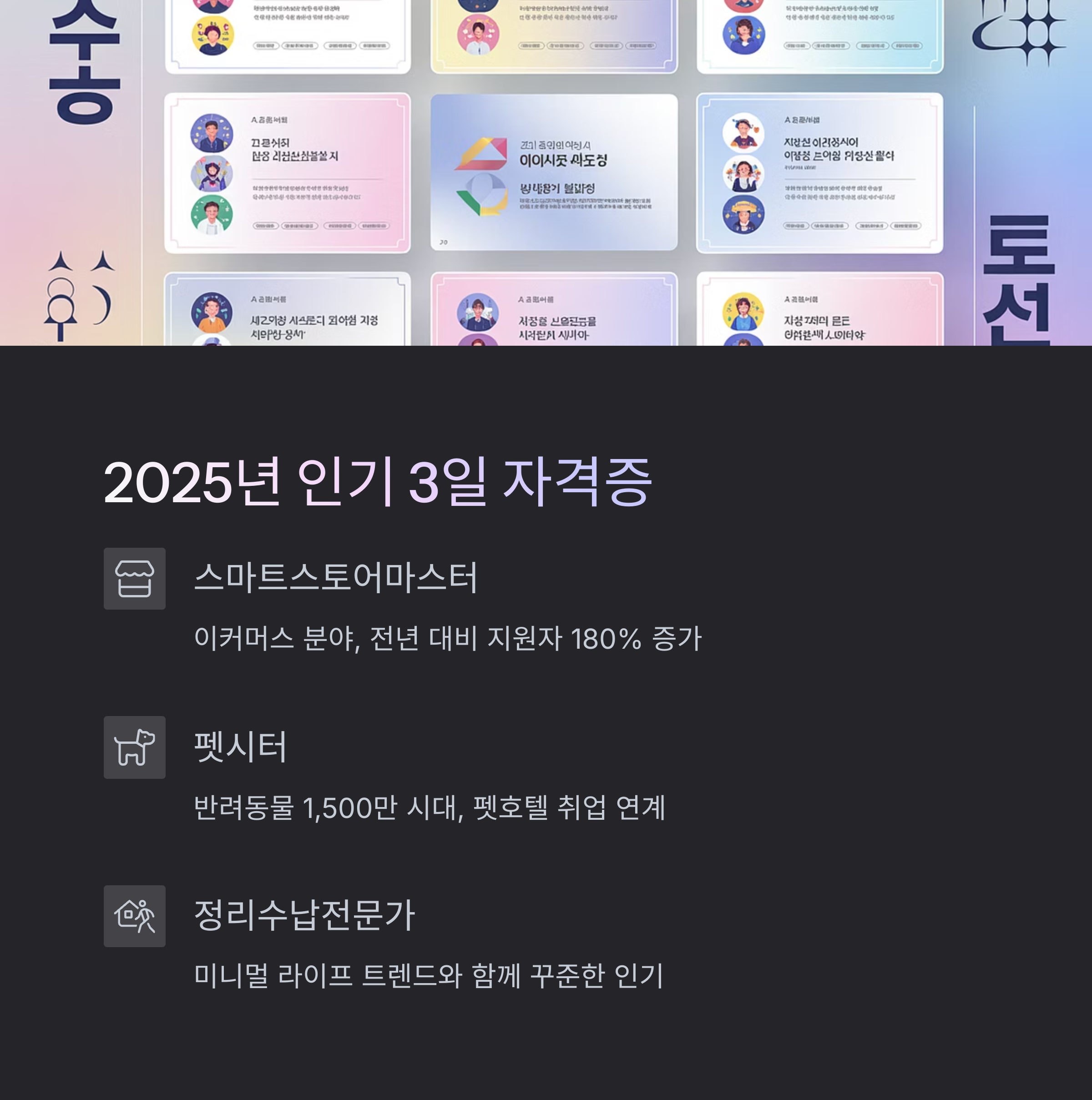 특히 스마트스토어마스터는 2025년 상반기 지원자 수가 전년 대비 180% 증가했어요. 이커머스 시장 성장 덕분이에요.