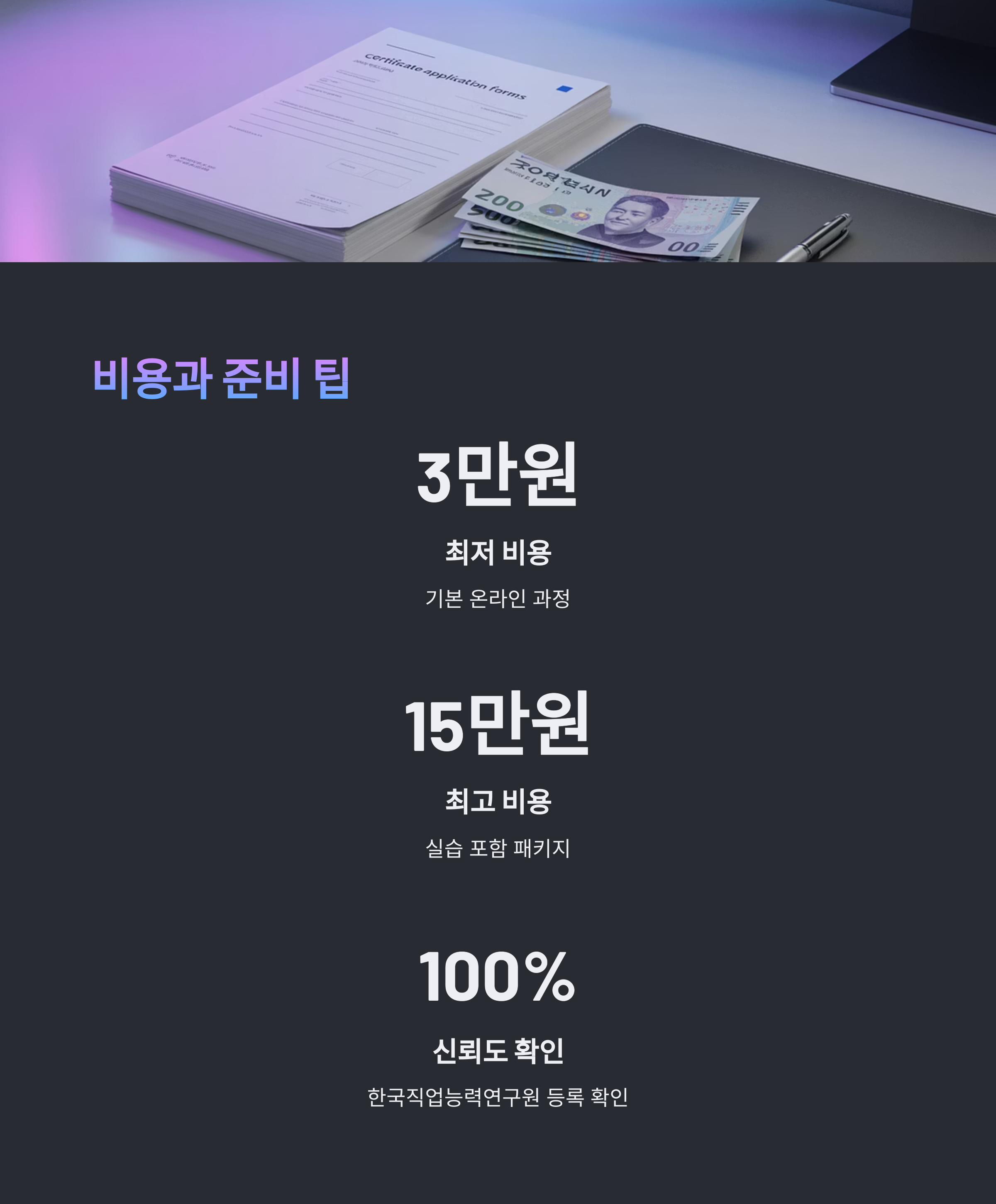 | 자격증 | 평균 비용 | 포함 항목 | 비고 |